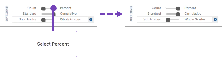 If you'd like to see percentages, rather than numbers, toggle Count / Percent to Percent:
