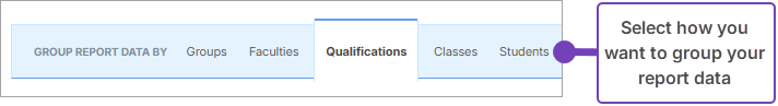 - Select how you want to view the grade ranges,for example, by Groups, Faculties, Qualifications, Classes or Students: