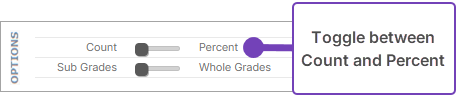 Toggle between displaying numbers and percentages in reports using the Count / Percent in OPTIONS: