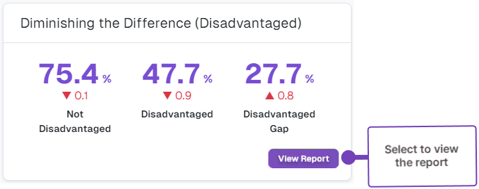 - This makes the Gap between Not Disadvantaged and Disadvantaged 0.8% greater overall than in the previous Assessment Period. When the Gap between the two characteristic groups gets wider, this is displayed in red as a percentage with an up-arrow to its left. When the Gap between the two characteristic groups closes, this is displayed in green as a percentage with a green down-arrow to its left. Red indicates that the gap is widening, whereas green indicates the gap is reducing which shows that each pupil has a fairer chance to succeed.