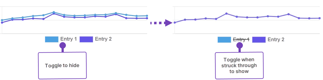 Entries in the Chart Legend can be toggled on / off when the chart is displayed to show / hide them. When hidden in the chart, the legend entry is struck through: Roll over a legend entry to highlight it in the chart: |