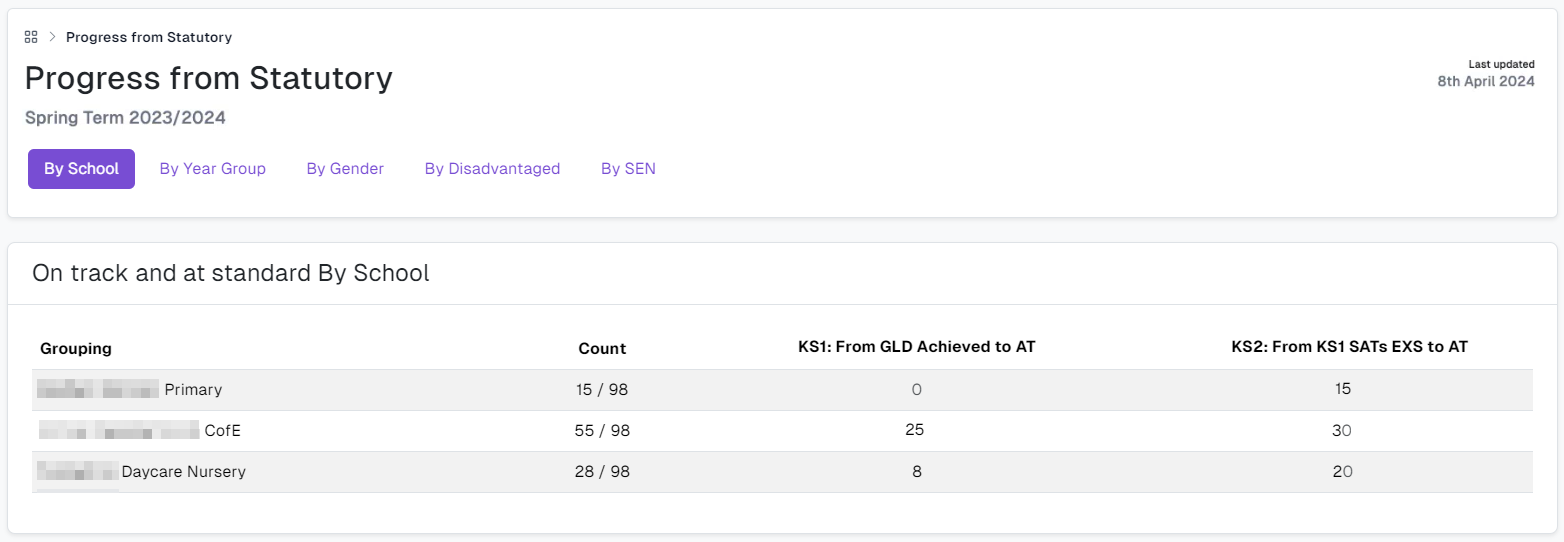 • Compare pupil progress within each individual School to that of others within your Trust.