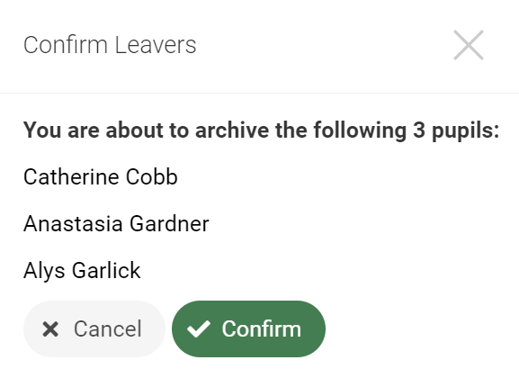 Leaving date will default to today and would mean that the selected pupils would be archived at the end of today's date. A leaving date in the past can also be entered - if this is the case, the pupil(s) will be archived immediately.