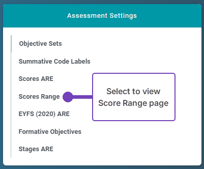 It is essential that both Current Scores Range and Scores - ARE values are set up before entering and analysing your Test Scores.