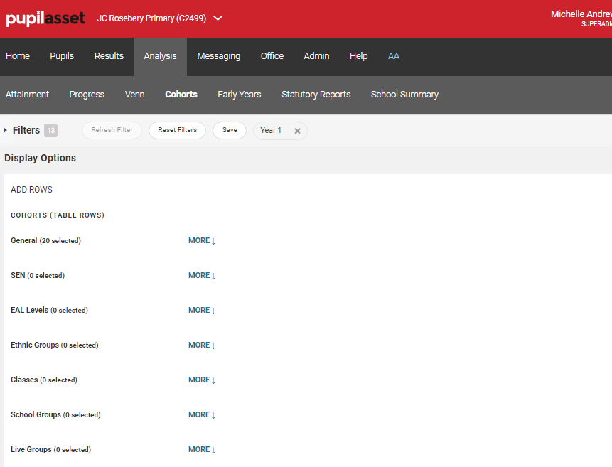 If, as per the screenshot below, you are unable to view 'SEN' within the 'ADD ROWS' section of the Cohort Report this is because you have not activated the SEN function within the School Options section of Pupil Asset.