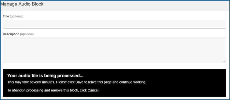 You will now see the below screen, where you have the option to add a title and description for the audio file you are uploading.
