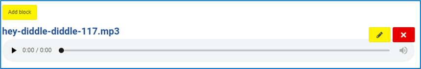 You can delete the whole block by selecting the red ‘x’ button located on the right-hand side of your audio clip or if you select the yellow ‘edit pencil’ button, you will be taken to the ‘manage audio block’ area where you can amend your title and/or description.