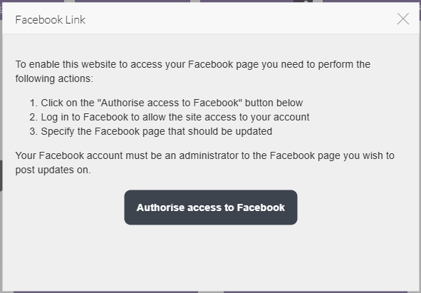 - Select Authorise access to Facebook from the Facebook Authorisation Settings window: