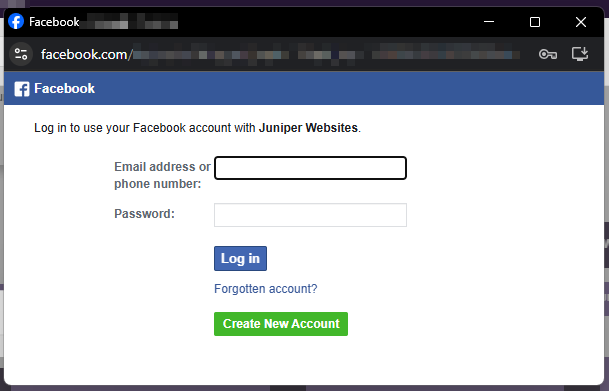 - Enter your personal Facebook account (which has full access to edit the Facebook Page) email address or phone number and password when prompted (do not log into the Facebook Business account), then select Log in: