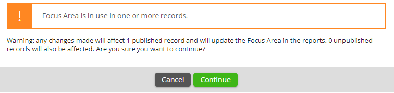 You will then be presented with a pop-up window, detailing how many published or unpublished records this change will affect.