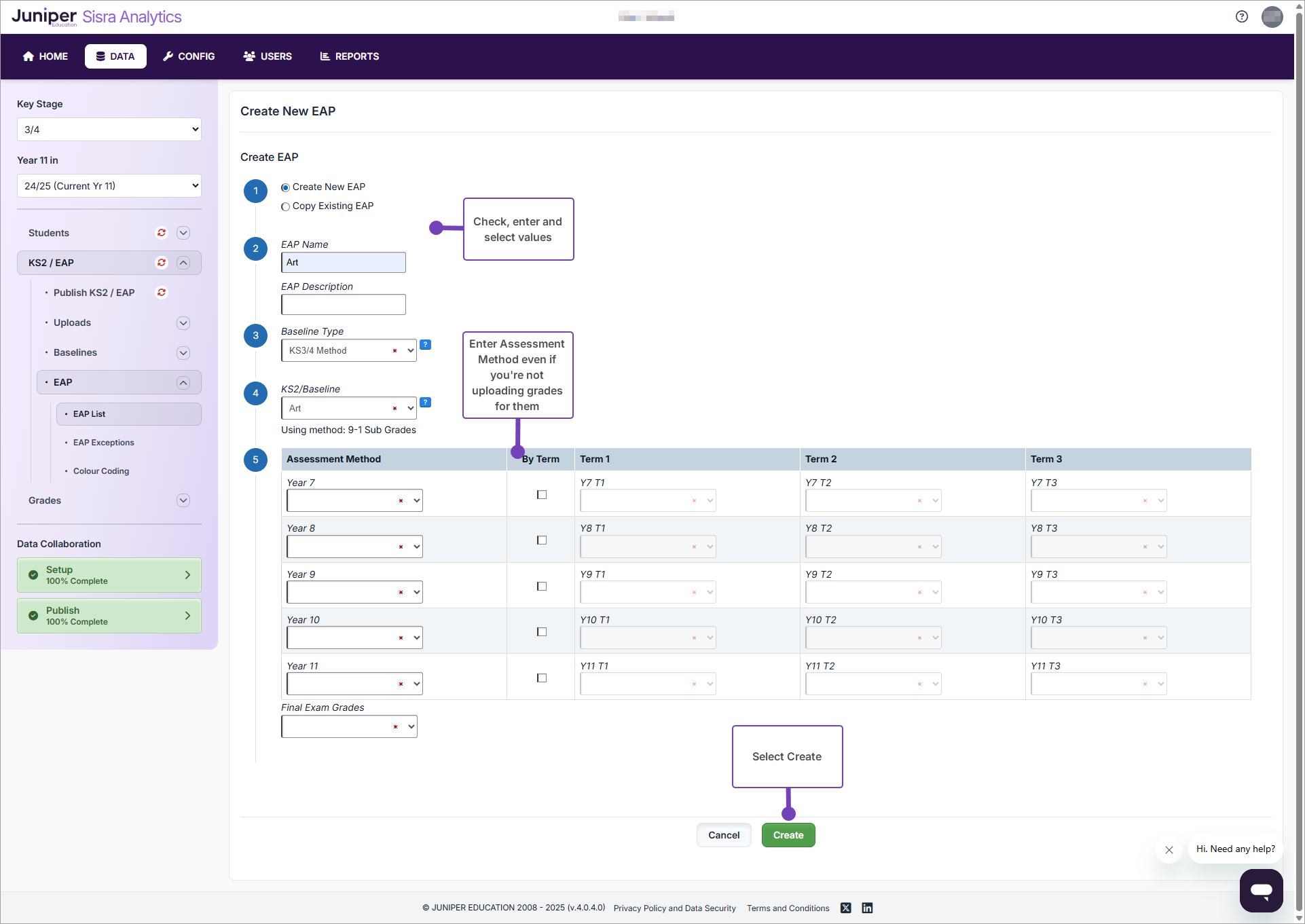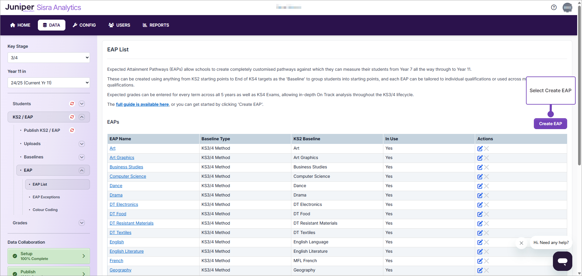 This article explains how to create one or more EAPs in KS3/4 after uploading baseline data for a cohort.