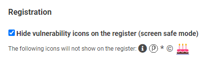 Visual pupil indicators can be removed from Class Registers (AM/PM registration widget) from the Registration Options in MIS Options (Admin > School Options > MIS Options)