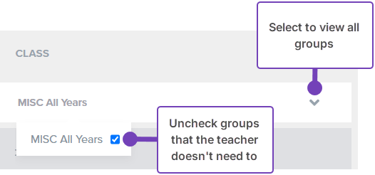 - Uncheck any unnecessary groups from the Class field. For instance, a Head of House may be assigned to all pupils in their House but may only wish to meet families from the classes they teach: