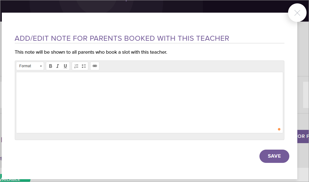 - Select Add/Edit note for parents booked with this teacher: