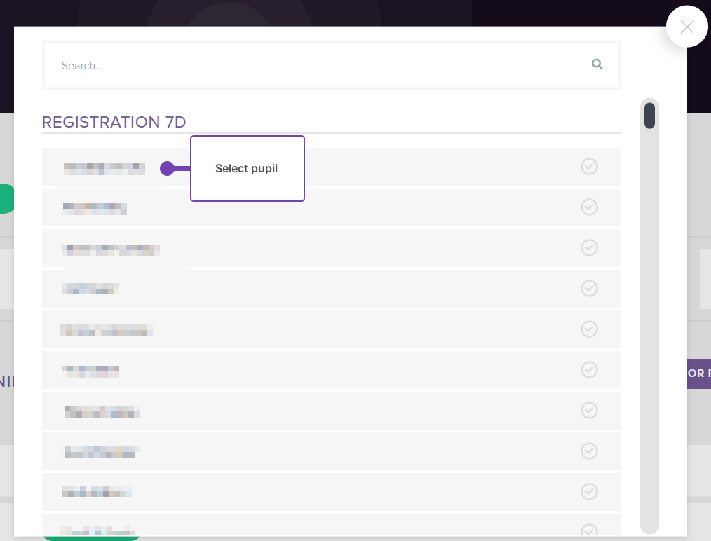 - Select a pupil from the list (you'll only be offered pupils who the staff member is expecting to see):