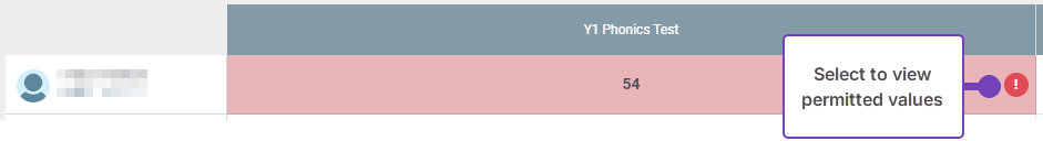 Select the exclamation mark icon to view permitted values:
