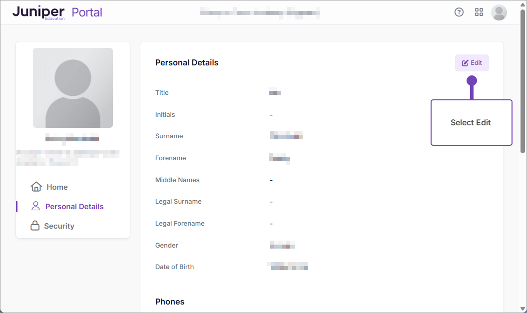 - Select Personal Details: