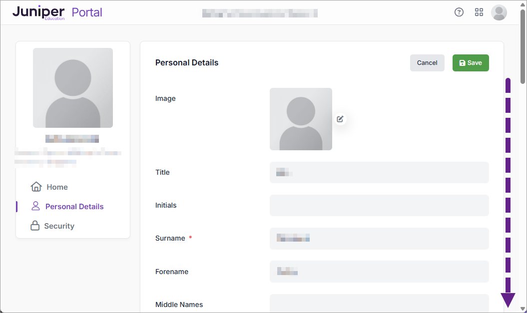 - Scroll down the page and locate the details that you want to edit, for example, your name or email address: