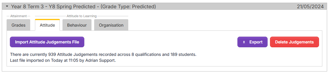 - Upload any grade file into the assessment collection. This lets you access the Attitude to Learning judgements.