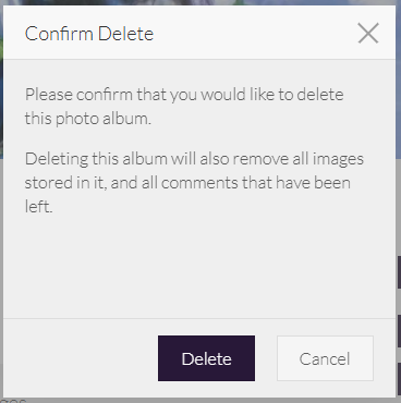 - Select Delete now to remove the photo album from your website immediately - not all users see this option.
