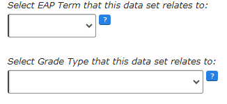 This can be checked within Analytics via DATA > select Key Stage and Cohort > GRADES > Uploads > select the Data Set or Assessment Collection. Check the ‘Select Grade Type that this data set relates to:’ dropdown has the correct type selected, and that the correct 'EAP Term' is also set: