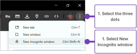 - Open your browser in Incognito / Private mode. How you do this varies depending on your browser, for example, in Chrome: