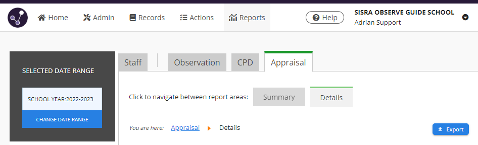 Did you know you can easily view reflections and resources that staff have added to their records in the reports? To do this, click Reports, select a record type (e.g. Quality Assurance, Appraisal etc.) then click the Details tab.