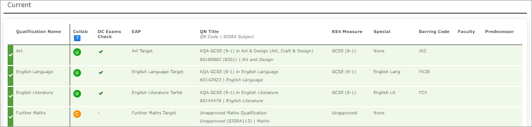 Your Further Maths qualification is linked correctly to a qualification, and is showing correctly as Unapproved: