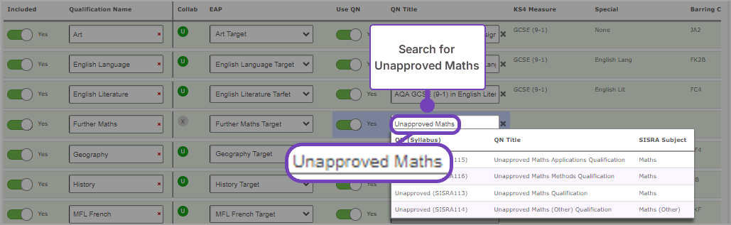 - In the QN Title for Further Maths, search for Unapproved Maths: