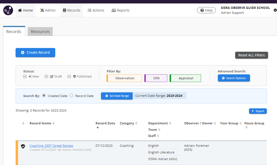 - To change the Observer/Owner, the Observee (Staff, Team or Department) or Class