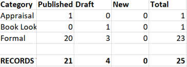 You can also export a table displaying the number of published, draft and new records, as well as the overall total for each of the following:
