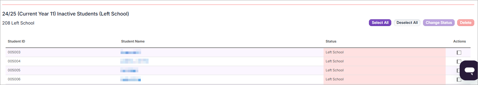 - Checking for any students with correct Student IDs, who should be Left School for the cohort. Uncheck these.