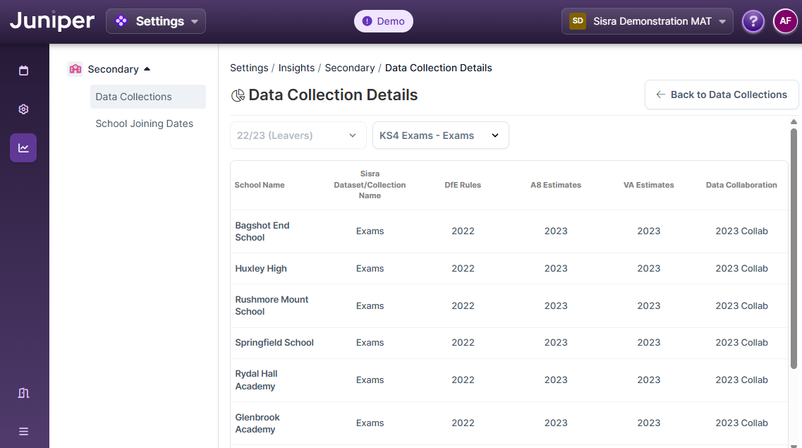 Once published, check the Data Collection Management area in the MAT Dashboard again (mentioned above) to ensure the school has pulled through.