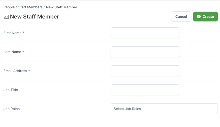 Next, fill out the relevant fields to create the staff member: