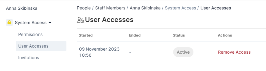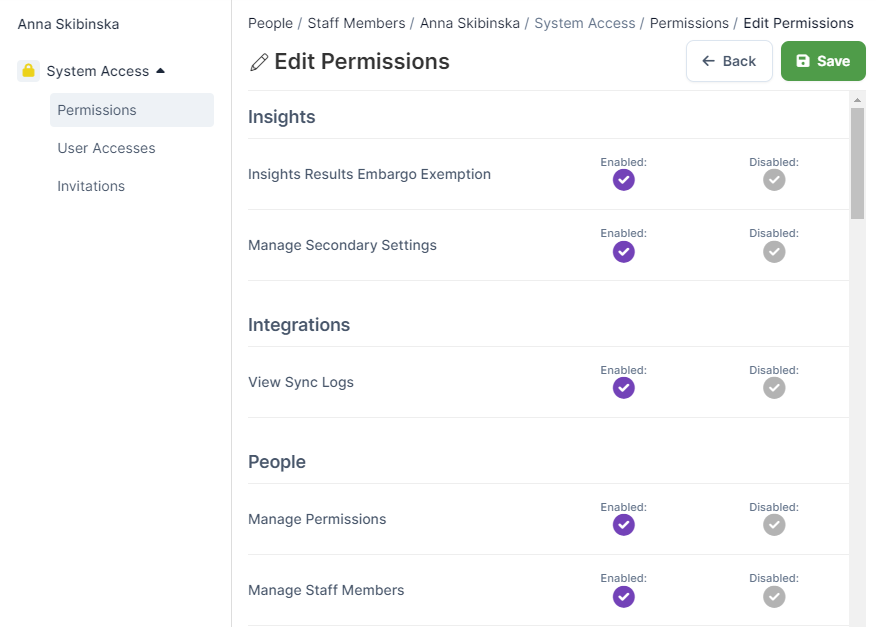 By clicking the System Access dropdown, you can make changes to their specific Permissions. When making changes to a user's permissions, ensure to click 'Save' to keep those changes.