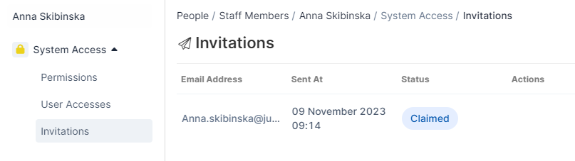 From here you can also cancel the invitation if no longer needed, or resend it if the staff member has misplaced the original email.