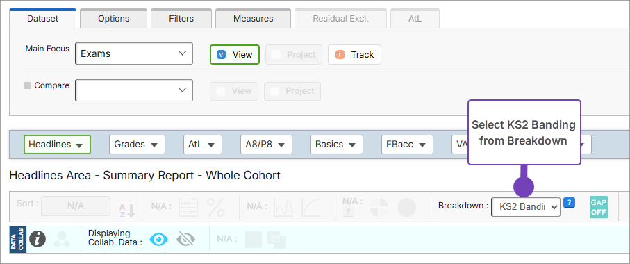 Select a tab to find out more about each way to filter your reports by KS2 Banding: