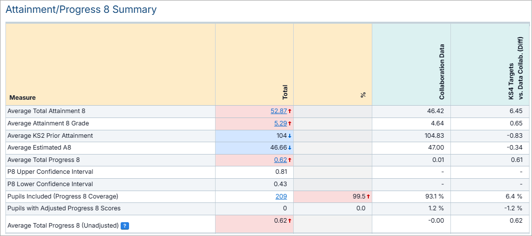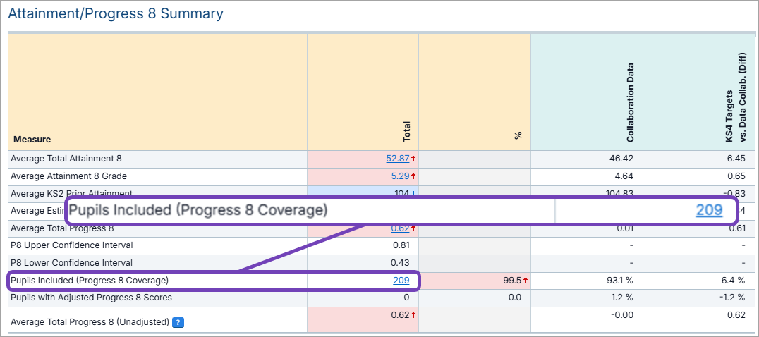 - Select the Total next to Pupils Included (Progress 8 Coverage):