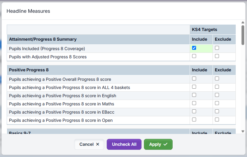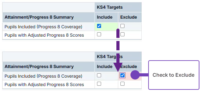 - Change Pupils Included (Progress 8 Coverage) from Include to Exclude: