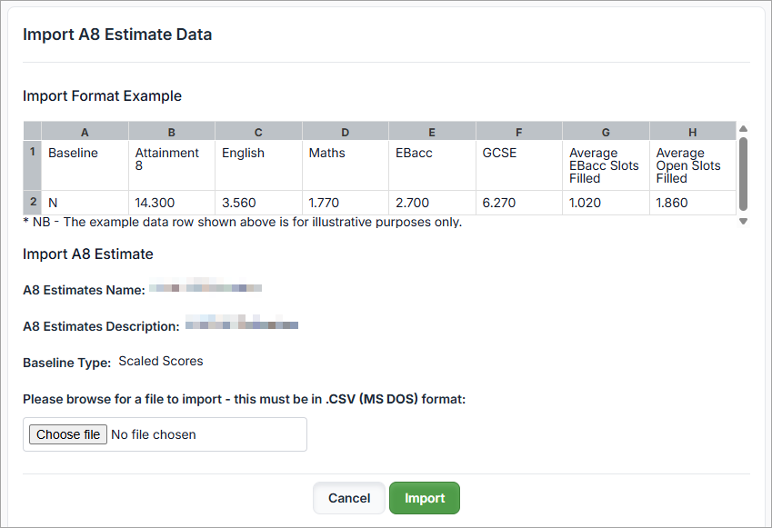 From A8 Estimates Detail, enter or modify the Attainment 8 Estimates for particular baselines.