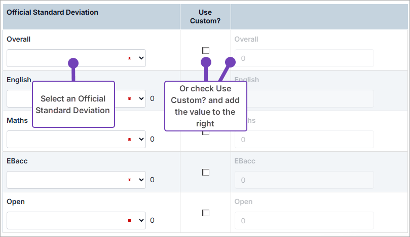 - Select which year's Official Standard Deviation figures you want to use.