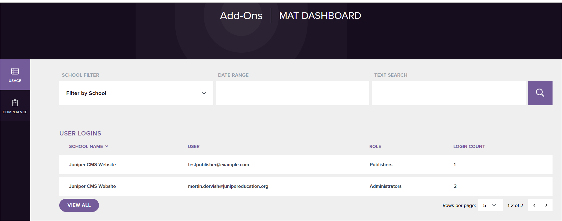 Follow these steps to view the MAT Dashboard usage data: