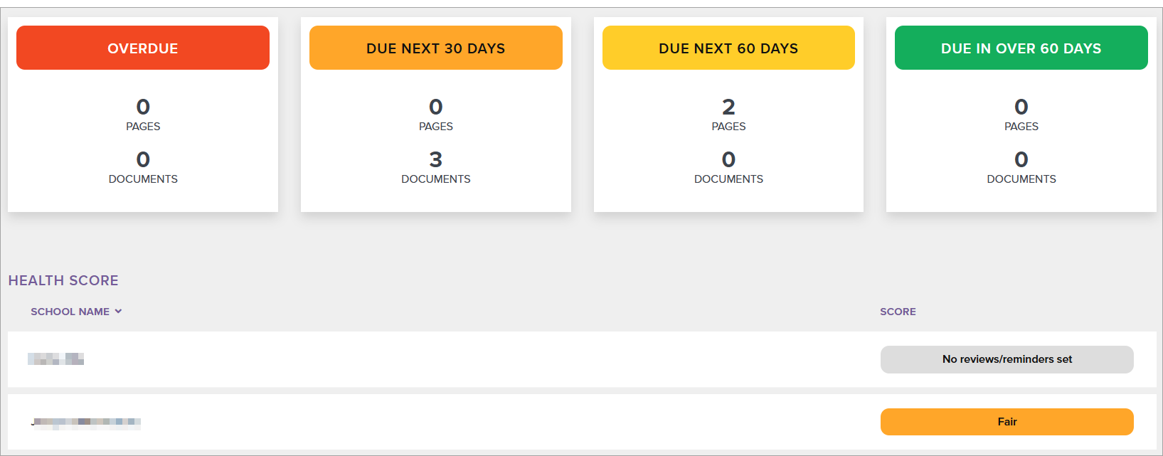 | Good | There are one or more pages and/or documents (attachments) marked for review in the next 60 days. |