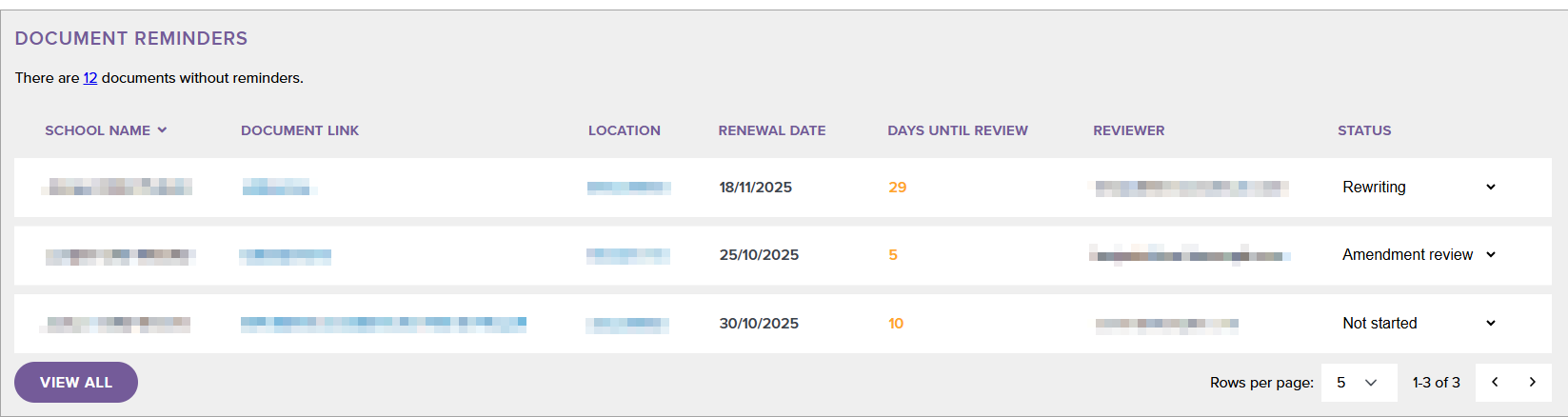 - Select View All to see a list of all Document Reminders regardless of due date.