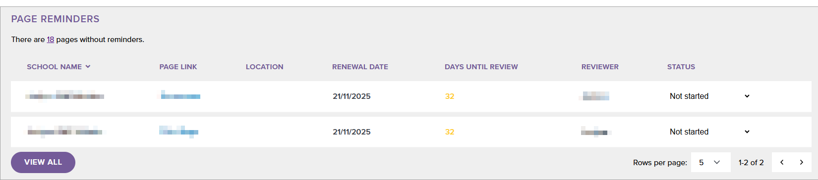 - Select View All to see a list of Page Reminders regardless of due date.