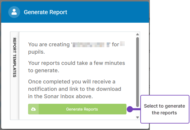 - When prompted, review the report details and select Generate Reports: