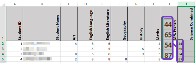 - Select the column where Combined Science results are stored. This restricts any changes you make to this column only: