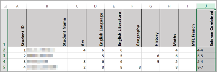 This article explains how to remove dashes (-) from Combined Science exam results, where awarding bodies release their results in a format using dashes, for example, 6-5, 5-5 and 5-4. Sisra Analytics cannot import these files. Instead, it requires the grades to be formatted without the dashes, for example, 65, 55, and 54, with the higher grade before the lower one, for example, 65, not 56.