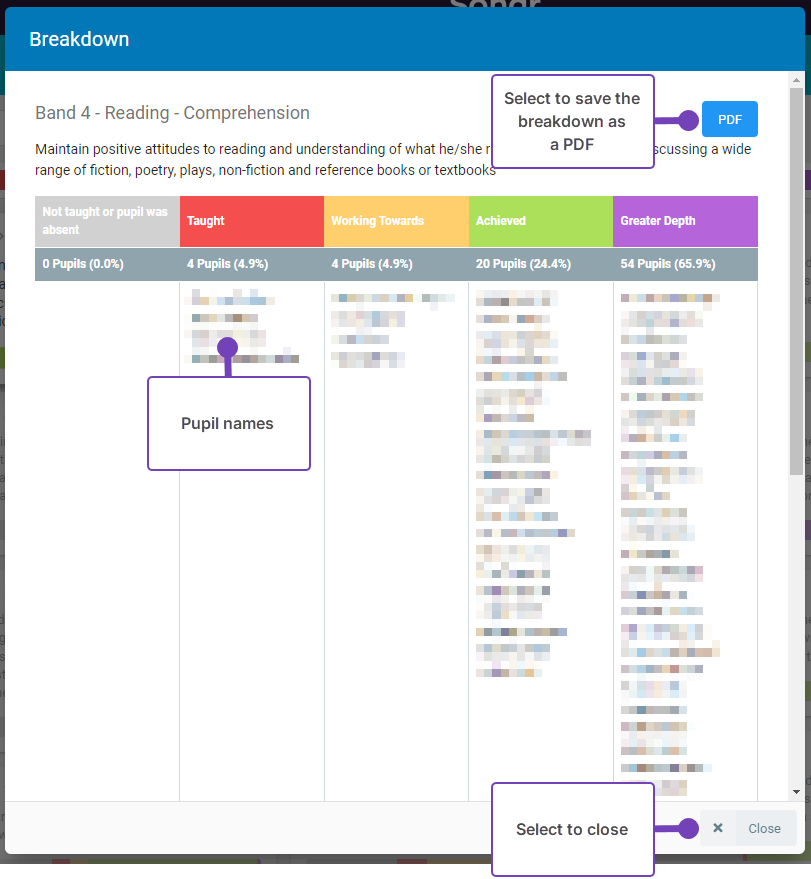 - Review the data to identify areas where interventions may be beneficial for individual pupils.