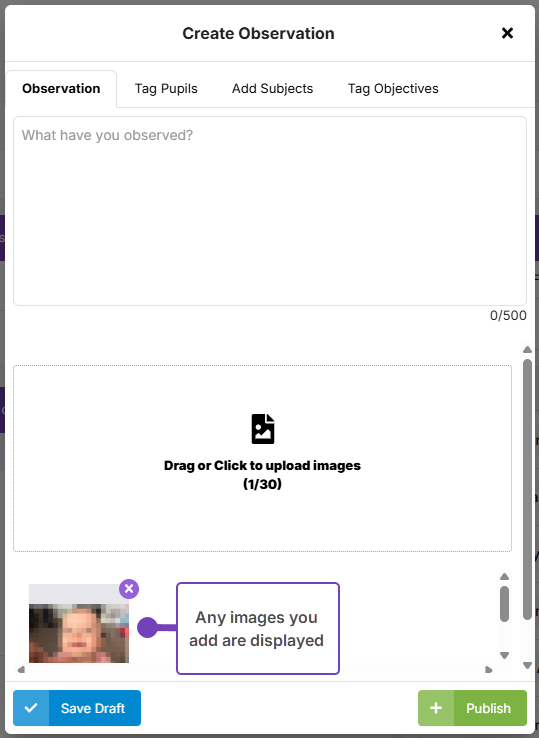 - Once completed, save or publish your observation.